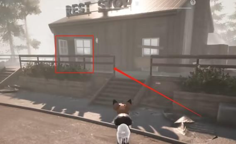 2、抵达目标区域后,注意寻找带有REST STOP标识的屋顶建筑。该建筑外墙采用红色砖块结构,入口处设有破损木门,操控角色贴近门框即可触发进入动画。