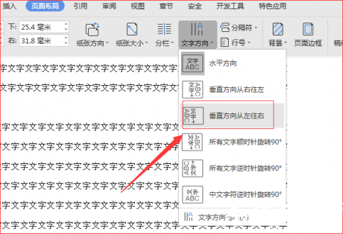4、方向设置选择:在展开的文字方向下拉面板中,选择标有「从左到右垂直方向」的预设选项。此设置将同时改变文字排列方向和阅读顺序,特别适合需要仿古式排版的文档需求。