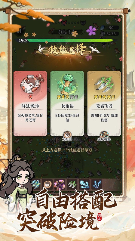本作融合roguelike元素与东方修仙体系,玩家将扮演天命修士探索随机生成的秘境。战斗中需灵活运用御剑术与五行遁法,通过击杀怪物获取功法残卷与灵丹妙药。每次轮回修炼都能永久提升角色属性,搭配近百种天赋组合形成独特战斗流派。