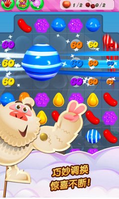时间紧迫的关卡中,快速识别可形成特殊糖果的组合,专注制造横向条纹糖果可有效提升消除效率。