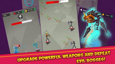 火柴人史诗弓箭手特色武器竞技场是一款融合动作射击与策略闯关元素的横版对战游戏。在充满挑战的关卡中,玩家将化身身手敏捷的弓箭手,通过触屏操作实现精准的拉弓射击,游戏内置多样化武器框架与角色成长系统,60余种特殊装备搭配物理引擎打造的抛物线机制,让每次战斗都充满策略趣味。